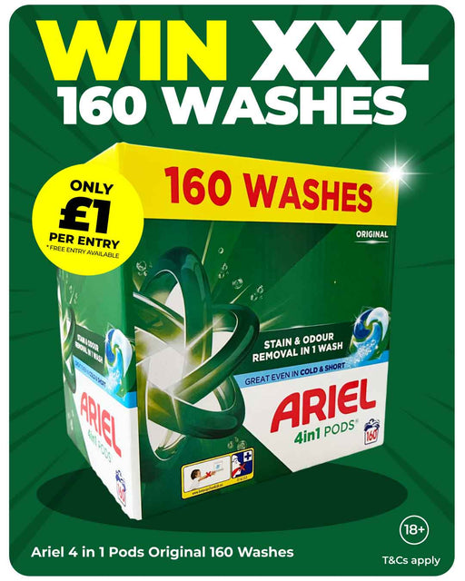 Don't miss your chance to win this Ariel 4 in 1 pods BIG BOX and save with an incredible 160 washes for only £1 per entry or free postal entry avai...