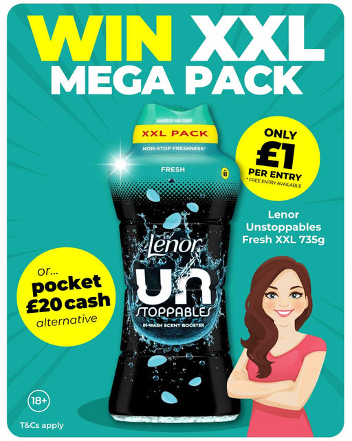 Don't miss your chance to win this Lenor Unstoppables XXL Mega Pack 735g for only £1 per entry or free postal entry available. Prize - 1 x Lenor Un...